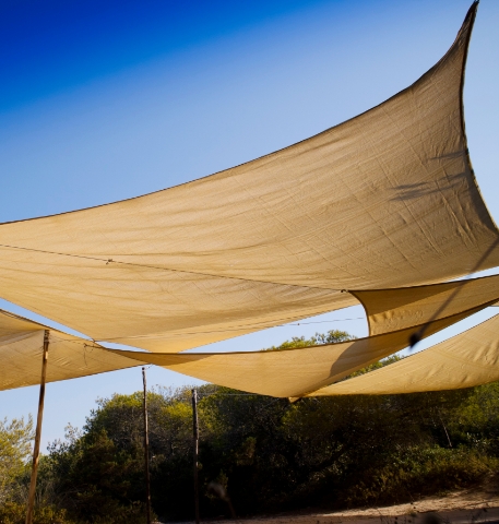 Les voiles d’ombrage, spécifiquement conçues pour d’horticulture, sont des toiles légères et perméables. À tendre directement au-dessus des plantes, elles créent une zone d’ombre partielle.