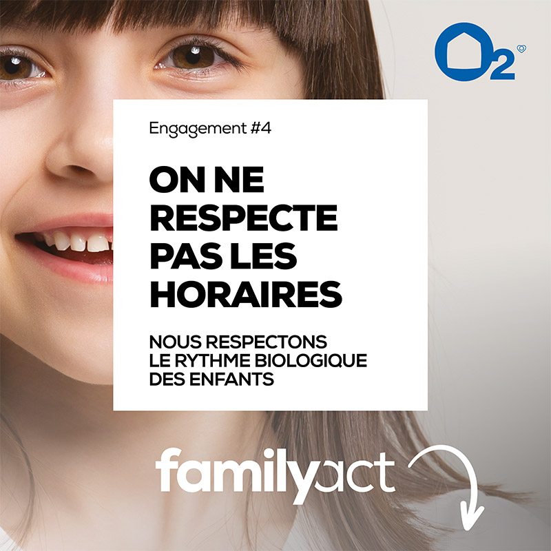 C’est d’abord un engagement des équipes d’O2 envers vous et votre famille, en accompagnant vos enfants dans leur épanouissement et en préservant leur équilibre, et le vôtre ! FamilyAct, c’est aussi et avant tout une approche différente du métier de nounou, dans laquelle l’enfant et sa famille sont au cœur. Chaque jour, grâce à une méthode élaborée par des spécialistes de la petite enfance, nous nous engageons auprès de vous afin que les enfants que vous nous confiiez soient épanouis, éveillés, en toute sécurité.