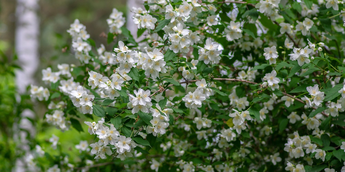 Le philadelphus : attendez-vous à des effluves envoûtants avec cette star aux bouquets blancs aériens ! Un peu frileux, il sait se montrer reconnaissant si vous le dorlotez, surtout après sa floraison printanière.