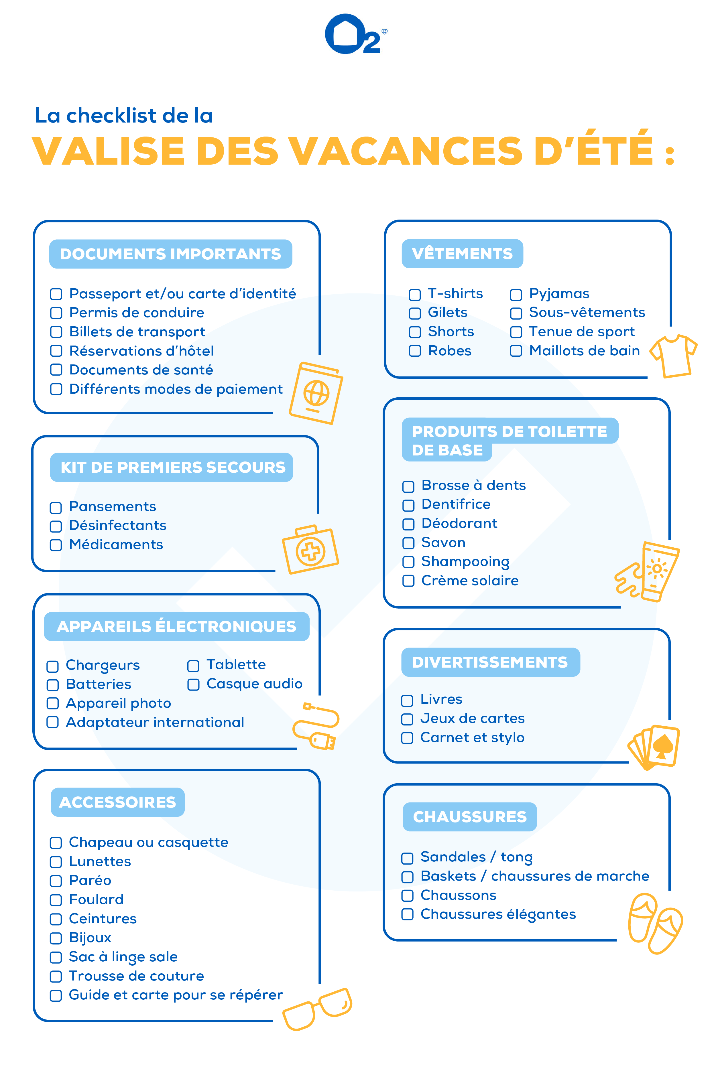 En cette période de vacances, préparer les valises de toute la famille peut parfois être source de stress et de tensions. Pour vous aider à aborder cette étape avec sérénité, O2 vous propose une méthode simple et pratique pour faire vos bagages dans la joie et la bonne humeur… sans rien oublier !