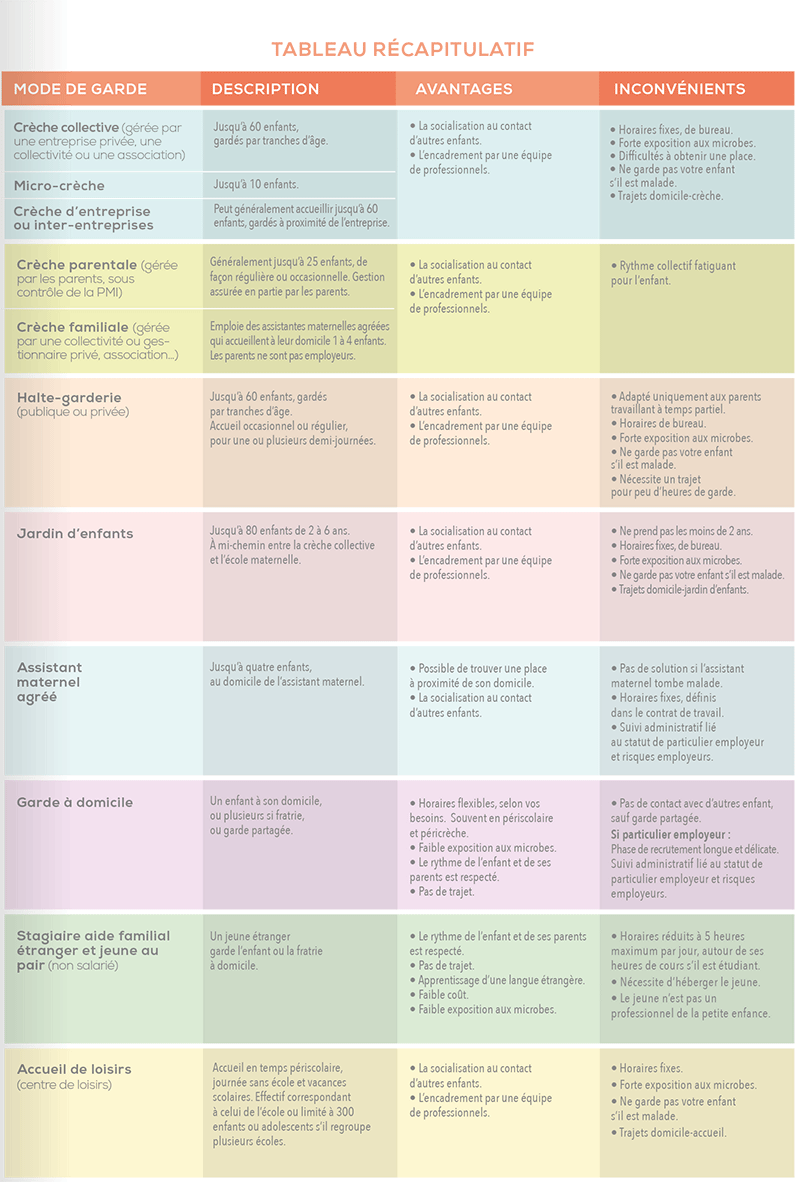 Pour bien choisir, il faut être bien informé. Ainsi, pour que vous puissiez avoir toutes les cartes en main, voici un petit état récapitulatif des principaux modes de garde que vous pourrez envisager :